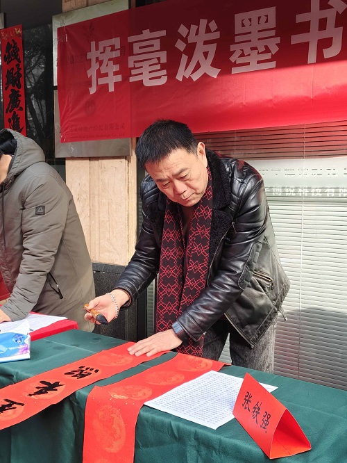 2026年2月1日上午,湖北中国画研究院组织书画家走进南湖名都社区,开展“迎新春、送福字、赠春联”文化惠民活动,以笔墨传情,为社区居民送上新春美好祝福,让浓浓年味浸润邻里之间。